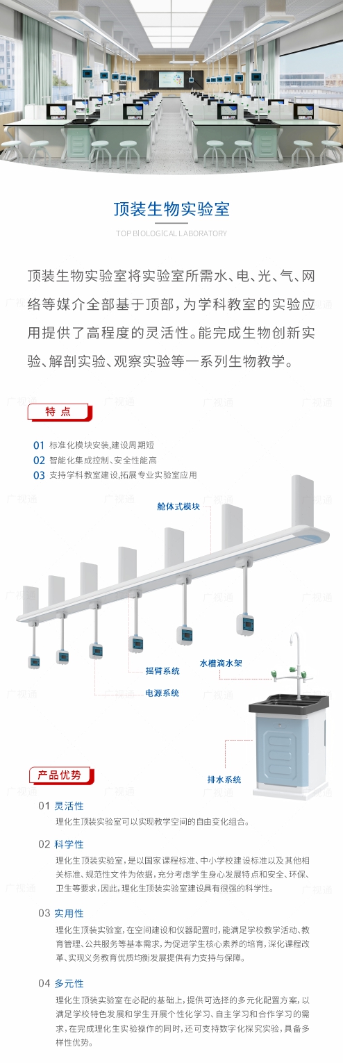 | 教育裝備數(shù)字化一站式解決方案,智能理化生實(shí)驗(yàn)室、中考實(shí)驗(yàn)操作考評(píng)系統(tǒng)、實(shí)驗(yàn)仿真與教學(xué)系統(tǒng)、數(shù)字書法教學(xué)云系統(tǒng)、中學(xué)AI教考實(shí)驗(yàn)室(升降式/便攜式智能終端)、頂裝/吊裝實(shí)驗(yàn)室、探究實(shí)驗(yàn)室、科學(xué)實(shí)驗(yàn)室、人工智能科創(chuàng)實(shí)驗(yàn)室、智慧書法教室、數(shù)字音樂教室、美術(shù)教室、數(shù)字地理教室、數(shù)字歷史教室、心理咨詢室、閱覽室、舞蹈室、陶藝室、烹飪教室、通用技術(shù)實(shí)驗(yàn)室、勞動(dòng)教育功能教室、科普探究等 |