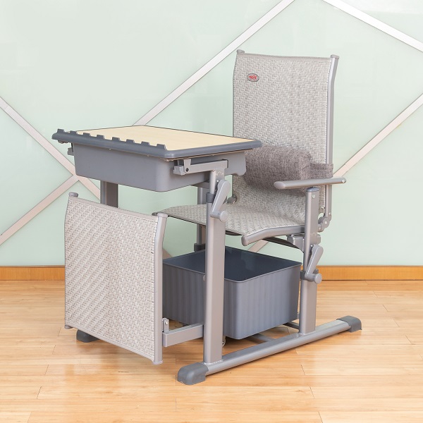 3、桌斗規(guī)格:360mm*450mm*100mm±3mm,PP塑料一次成型,可往上翻轉(zhuǎn),便于學(xué)生進(jìn)出。課桌底下前部設(shè)置藤質(zhì)躺板。