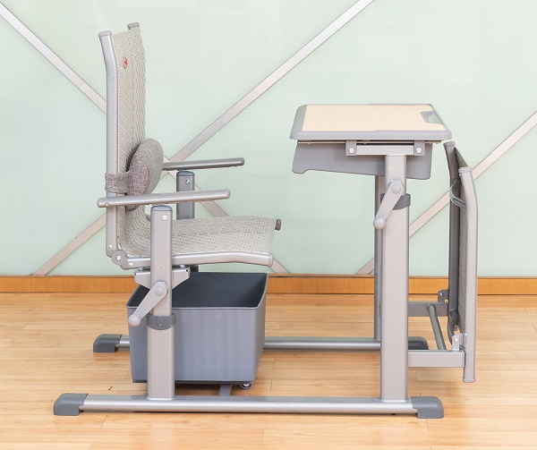 3、課斗規(guī)格:360mm*450mm*100mm±3mm,PP塑料一次成型,課斗可水平前后活動80mm,課桌底下前部設(shè)置藤質(zhì)躺板。