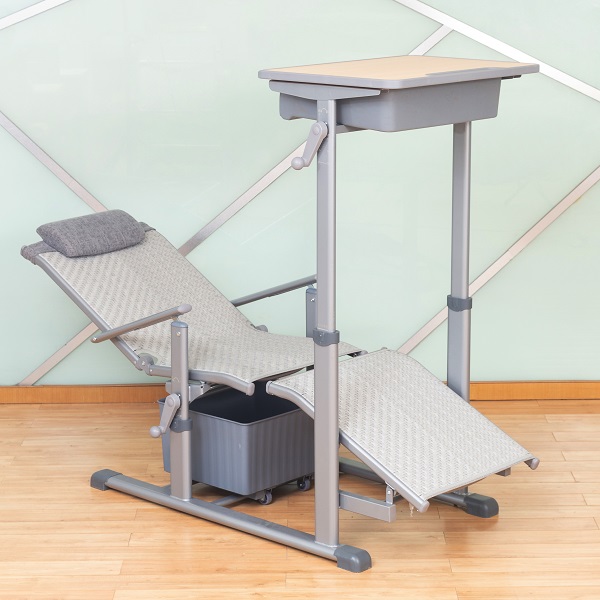 3、課斗規(guī)格:360mm*450mm*100mm±3mm,PP塑料一次成型,課桌底下前部設(shè)置藤質(zhì)躺板。