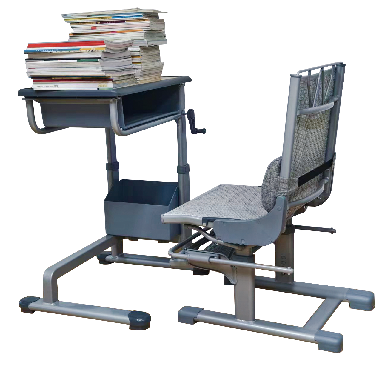 1、課桌規(guī)格:整體框架采用單側(cè)雙立柱結(jié)構(gòu),通過(guò)課桌立柱一側(cè)桌斗旁的手搖升降調(diào)節(jié)裝置,可調(diào)節(jié)桌面高度(640mm-790mm)±5mm,符合課桌椅國(guó)標(biāo)5號(hào)-0號(hào)標(biāo)準(zhǔn),適用于小學(xué)到高中群體。