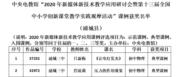 2018年,在呂新梅的指導(dǎo)下,物理教師歐陽(yáng)瑩雪執(zhí)教的《連接串聯(lián)電路與并聯(lián)電路》獲中央電教館教學(xué)課評(píng)比一等獎(jiǎng);2019年,呂新梅的課件制作《連接串聯(lián)電路和并聯(lián)電路》獲第二十三屆全國(guó)教師教育教學(xué)信息化交流活動(dòng)基礎(chǔ)教育課件獎(jiǎng)……