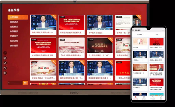 方案內(nèi)置權(quán)威而全面的課程資源,覆蓋黨史學(xué)習(xí)、重要講話、黨性修養(yǎng)、政策解讀、黨建國史、名家講堂、廉政建設(shè)等多項內(nèi)容,進(jìn)一步豐富紅色精神的內(nèi)核,黨員不僅可以通過黨員智慧云課堂大板現(xiàn)場學(xué)習(xí),也可以隨時隨地的通過“云課堂學(xué)習(xí)端”公眾號進(jìn)行線上學(xué)習(xí)。
