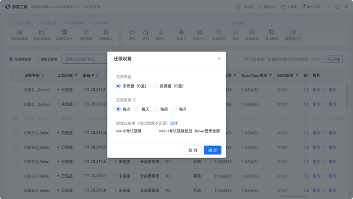 可在GuestTool中修改還原配置、IP地址,設(shè)置默認(rèn)鏡像、啟動(dòng)方式等需求,無(wú)需重啟進(jìn)入小系統(tǒng)。