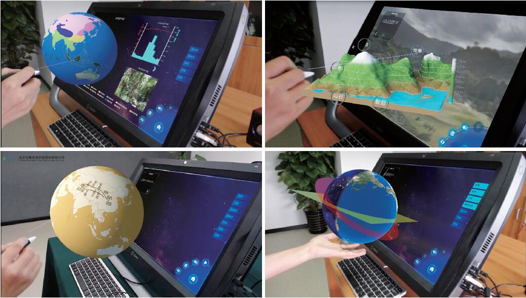 硬件以桌面級(jí)便攜式一體化虛擬現(xiàn)實(shí)設(shè)備為核心,軟件包含地理、歷史、物理、化學(xué)、生物、自然科學(xué)和創(chuàng)客等多種學(xué)科教學(xué)體系。