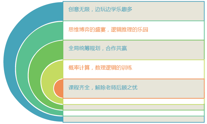 博弈數(shù)學教育課程教學活動主要面向7-18歲青少年,通過體驗式活動教學游戲,培養(yǎng)青少年的數(shù)理邏輯、博弈思維、團隊合作、獨立思考、創(chuàng)新、自定義及設計、溝通表達等綜合能力。活動課程采用活動體驗式教學方法,這種方法強調(diào)學生為主,興趣入手,讓學生通過興趣驅(qū)動來學習,在快樂中學習,在快樂中理解知識,在快樂中尋找自己的答案。