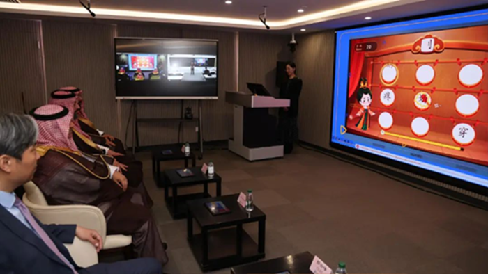 4月21日,沙特阿拉伯教育大臣優(yōu)素!け狙勇蕡F訪問教育部中外語言交流合作中心(以下簡稱“語合中心”),并出席中沙高等教育合作交流活動。沙特駐華大使阿卜杜拉赫曼·哈勒比、沙特教育次大臣納賽爾·穆罕默德·阿基利一同到訪。語合中心主任郁云峰、中國教育部國際司副司長趙磊、語合中心副主任胡志平接待到訪的優(yōu)素福大臣一行,并與北京大學等9所知名高校領導共同出席交流活動。在此期間,優(yōu)素福大臣一行參觀了由語合中心與文香聯(lián)合打造的“中文智慧教室”項目。