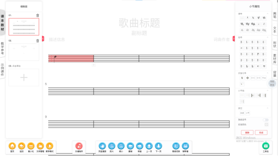無論是五線譜、簡譜,還是鋼琴譜、合唱譜,只需進(jìn)入【創(chuàng)作備課】模塊選擇相應(yīng)的譜表,即可進(jìn)入打譜頁面。