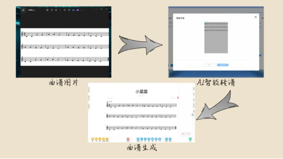 老師可以將圖片、PDF、MP3形式的樂譜上傳至軟件云端,用AI智能識譜功能自動識別生成可編輯的電子樂譜,老師可以自主調(diào)整編輯譜面,再也不用熬夜趕工啦~