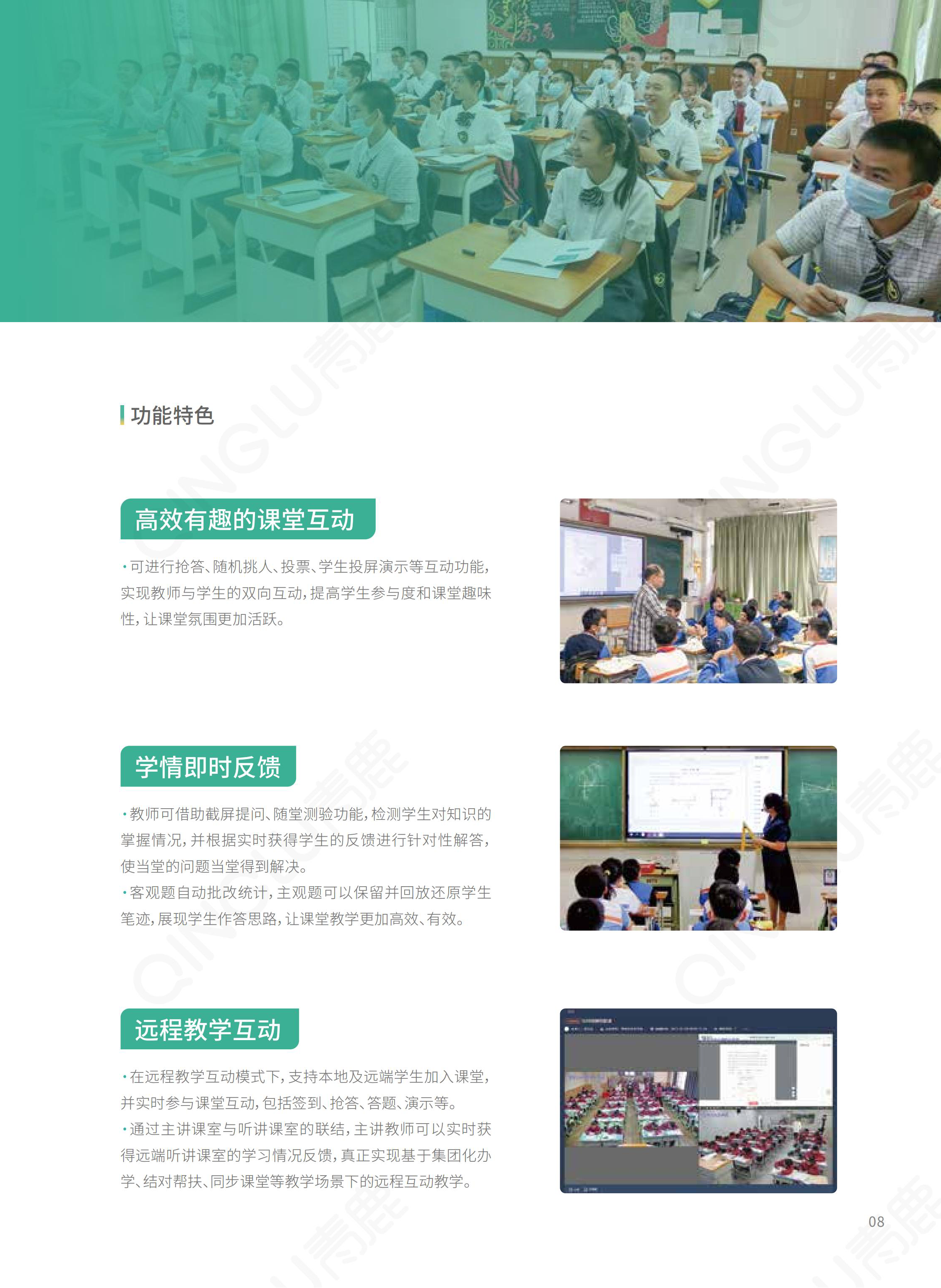 智慧教育信息化整體解決方案提供商,我們提供集智慧紙筆課堂、智慧錄播為一體的智慧教學(xué)環(huán)境,提供一套可廣泛應(yīng)用于K12學(xué)校信息化整體建設(shè)的開(kāi)放式底層平臺(tái),為學(xué)校的教學(xué)和管理質(zhì)量提升提供支撐,賦能教育的數(shù)字化轉(zhuǎn)型。