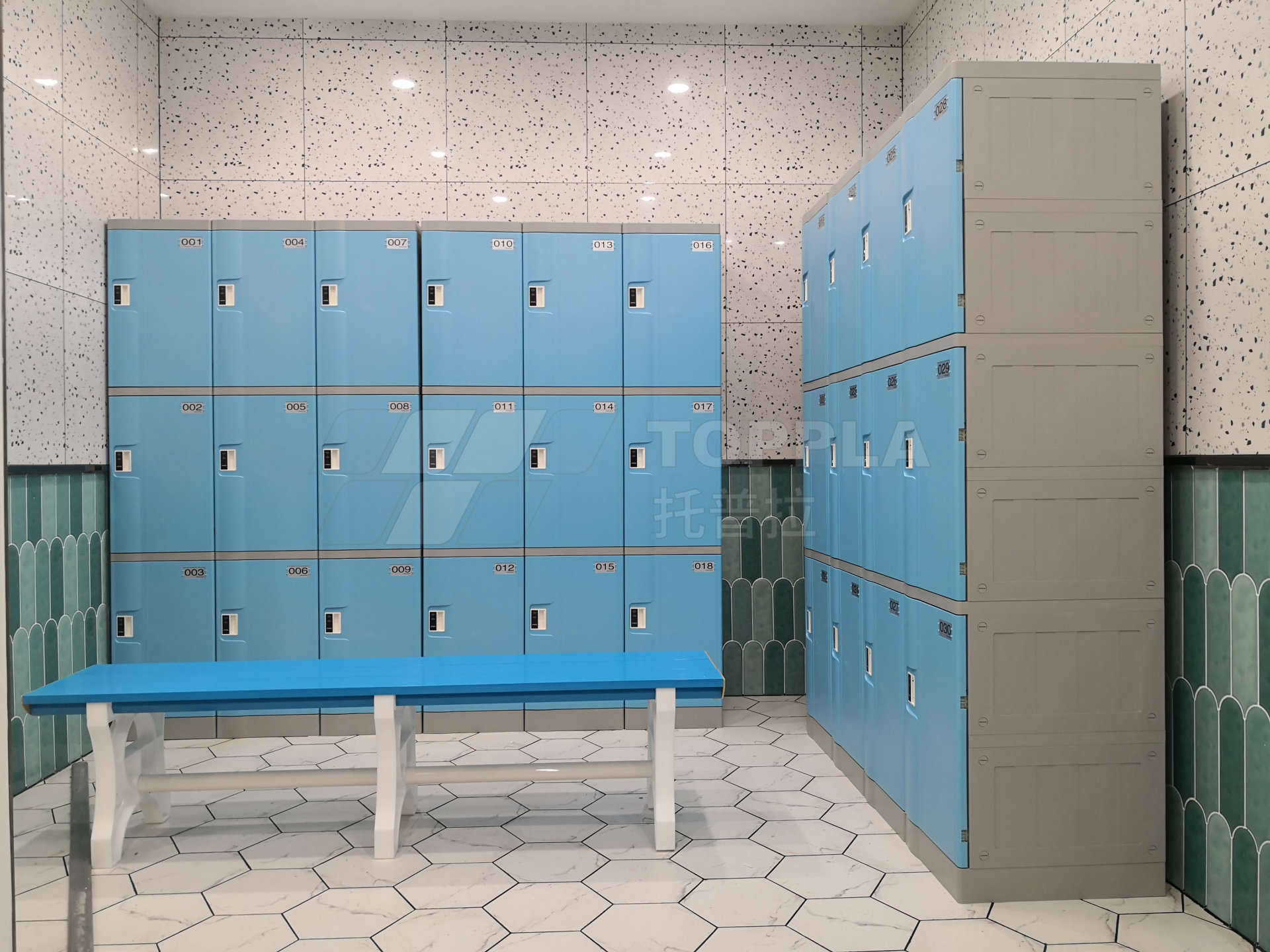作為宿舍私人物品的收納空間,學生們大多會拿來放衣物、日常用品,空間充足十分重要。托普拉為宿舍更衣柜提供的解決方案通常以L規(guī)格(高930mm)的儲物柜作為主打型號,根據(jù)宿舍空間及使用人數(shù)進行顏色、數(shù)量搭配。
