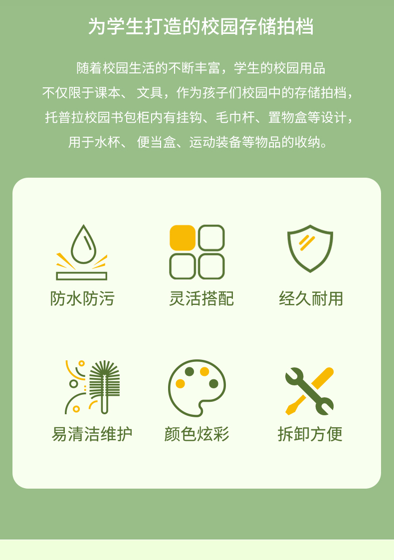 單柜空間大小適中,足夠收納小學(xué)生書包、課本等日常用品,