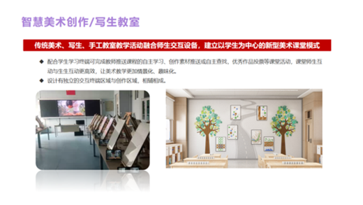 公司研發(fā)的智慧美育裝備產(chǎn)品結(jié)合國(guó)家政策與各地美育教學(xué)實(shí)地應(yīng)用,以藝術(shù)新課標(biāo)下美育素養(yǎng)評(píng)價(jià)為核心,貫穿軟件、硬件、課程、美育環(huán)境建設(shè)、服務(wù)于一體的一站式美育建設(shè)解決方案。為區(qū)域及學(xué)校提供藝術(shù)類(lèi)功能教室、美育課程、美育評(píng)價(jià)、美育教學(xué)監(jiān)測(cè)、美育大數(shù)據(jù)、美育作品展演等相關(guān)全應(yīng)用場(chǎng)景解決方案。
