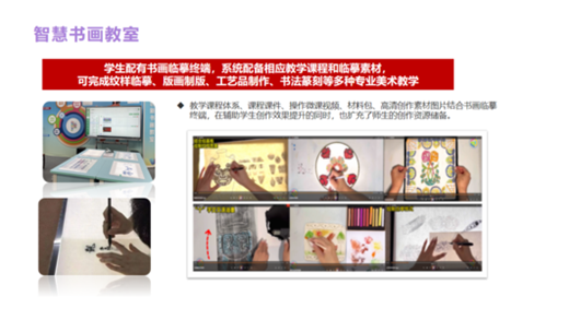 創(chuàng)藝號(hào)智慧書(shū)法教室是把傳統(tǒng)書(shū)寫(xiě)工具和信息化設(shè)備進(jìn)行整合,在不改變用戶(hù)使用習(xí)慣的情況下,達(dá)到滿(mǎn)足不同地區(qū)不同用戶(hù)的教學(xué)需求,填補(bǔ)書(shū)法教師師資力量薄弱的空缺,幫助學(xué)校和師生開(kāi)展互聯(lián)網(wǎng)時(shí)代的教學(xué)。隨著國(guó)家對(duì)傳統(tǒng)文化教育的重視,課堂教學(xué)中提高漢字書(shū)寫(xiě)能力的教學(xué)要求逐漸清晰,而針對(duì)《中小學(xué)書(shū)法教育指導(dǎo)綱要》教學(xué)所需的師資力量還遠(yuǎn)不能滿(mǎn)足教學(xué)需求。傳統(tǒng)的書(shū)法課堂教學(xué)形式過(guò)于呆板、學(xué)習(xí)方法相對(duì)落后、學(xué)習(xí)效率低下,無(wú)法適應(yīng)互聯(lián)網(wǎng)時(shí)代的廣泛應(yīng)用。中小學(xué)智慧書(shū)法校園即可部署在常態(tài)化教室中滿(mǎn)足日常漢字書(shū)寫(xiě)教學(xué)練的需要,又可形成做特色化硬筆、毛筆書(shū)法功能教室。教學(xué)系統(tǒng)中的配備成長(zhǎng)型課程體系、各類(lèi)音視頻資源、課程課件、漢字文化知識(shí)以及書(shū)法歷代碑帖確保教師教學(xué)標(biāo)準(zhǔn)有質(zhì)量,融合的學(xué)生端智能書(shū)寫(xiě)工具,配合書(shū)寫(xiě)智能評(píng)價(jià)算法和各類(lèi)教學(xué)方法,確保學(xué)生書(shū)寫(xiě)規(guī)范又高效。將為眾多老師書(shū)法課堂有質(zhì)量高標(biāo)準(zhǔn)的滿(mǎn)足書(shū)法教學(xué)。