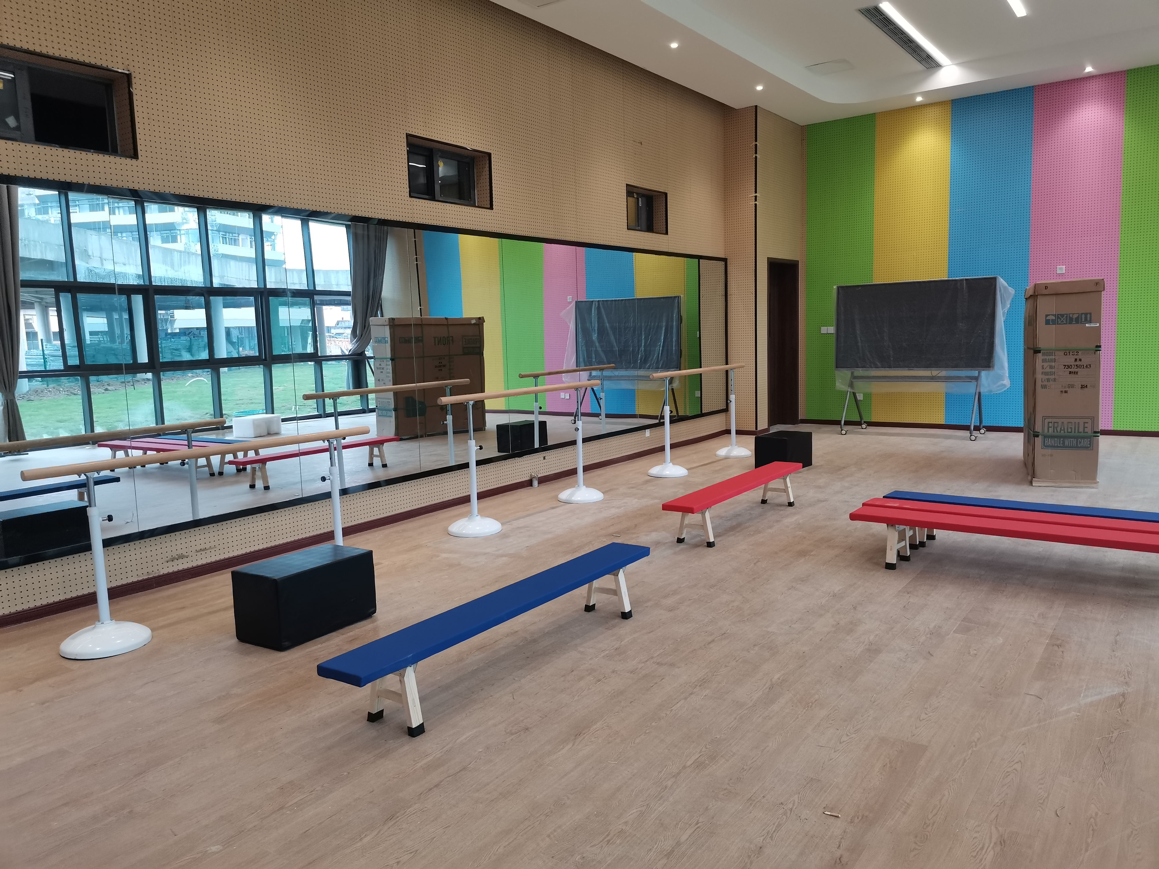 舞蹈教室是藝術(shù)教學(xué)中進行形體訓(xùn)練、舞蹈排練的場所,是學(xué)生學(xué)習(xí)舞蹈和文化素養(yǎng)的地方。舞蹈教室教學(xué)設(shè)備是給學(xué)生提供一個安全、舒適、適宜的學(xué)習(xí)環(huán)境。基本設(shè)備配備有音箱、鏡子、空調(diào)、地板、更衣室等;酒鞑呐鋫溆形璧赴褩U、舞蹈墊、練功球、拉力帶、壓腿磚等。