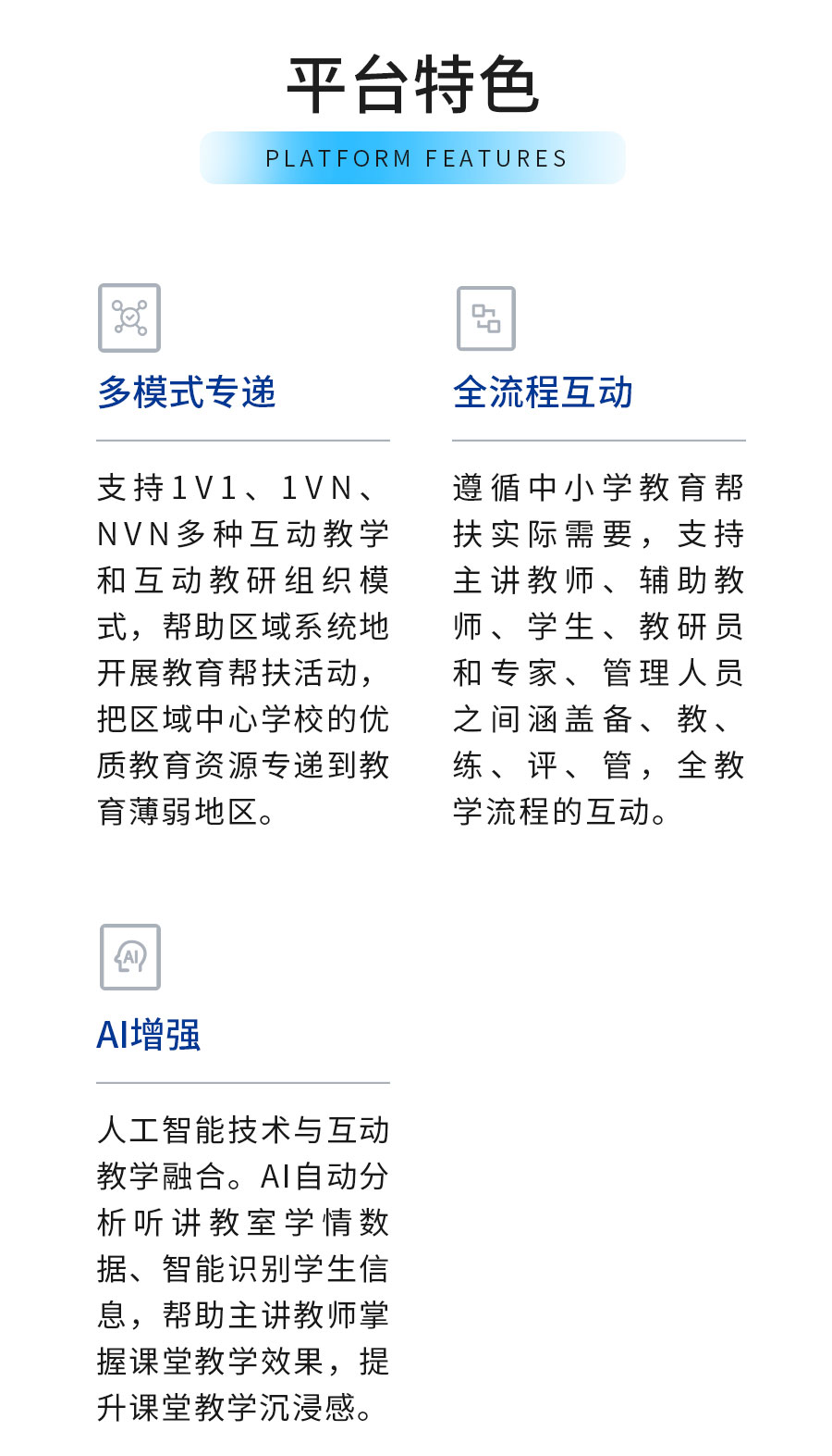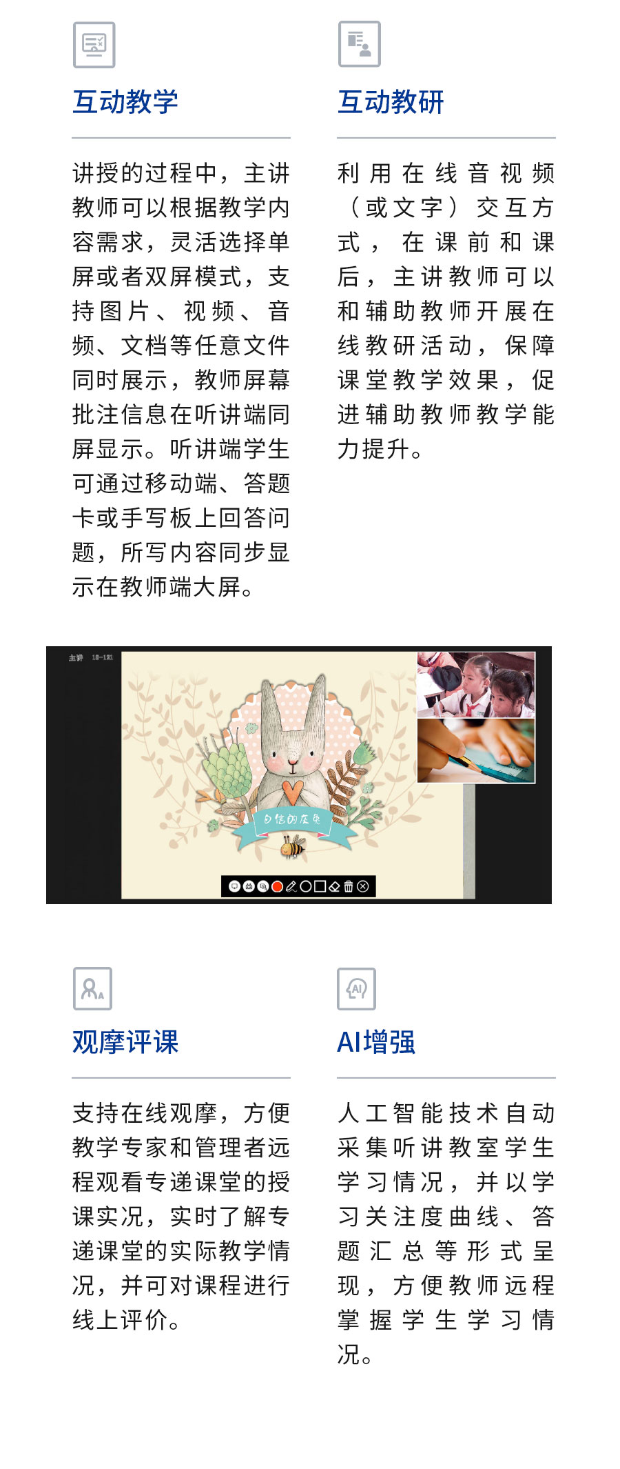 AI教研應(yīng)用、錄播系統(tǒng)、智慧教室、“三個(gè)課堂”解決方案等