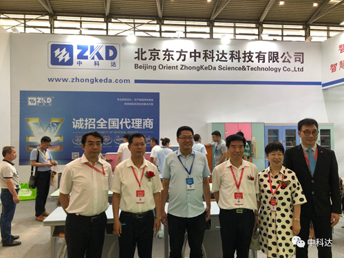 ▲中國教育裝備行業(yè)協(xié)會會長王富與中科達(dá)副總經(jīng)理趙建敏及參展人員合影