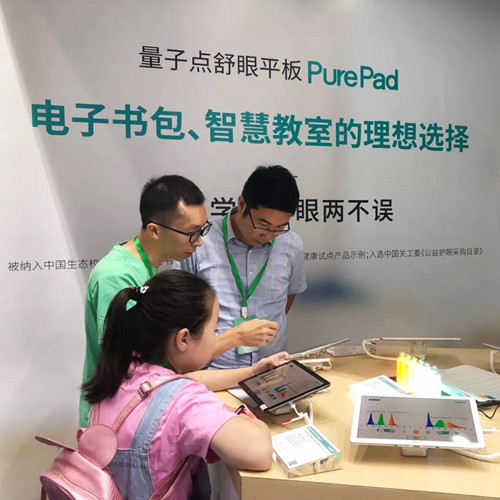 展會上,納晶科技量子點健康顯示技術(shù)和產(chǎn)品激發(fā)了眾多參展觀眾的興趣,也得到了眾多教育部門及集成商的肯定。當(dāng)前,納晶量子點舒眼平板PurePad已被納入中國生態(tài)校園建設(shè)系列叢書之《視覺健康與光環(huán)境》保障視覺健康典型產(chǎn)品示例,納晶量子點護眼相關(guān)解決方案被納入中國關(guān)工委首批《公益護眼采購目錄》。
