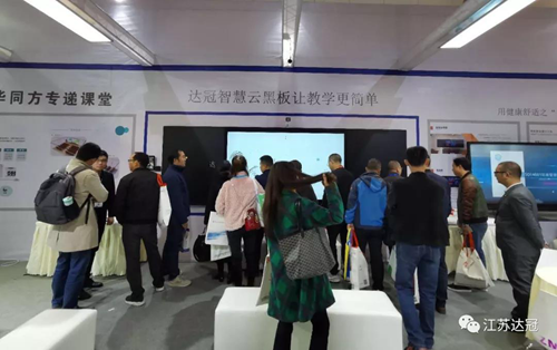 在達(dá)冠教育展位聚集了眾多來(lái)賓,大家紛紛上前體驗(yàn)產(chǎn)品,多人同時(shí)書寫,一邊書寫一邊擦除,都可以輕松實(shí)現(xiàn),智慧云黑板觸控模組具有自動(dòng)感應(yīng)識(shí)別功能,消除感應(yīng)遲鈍狀態(tài),達(dá)到與手機(jī)同等靈敏度效果,即使黑板表面有大量積水仍可正常觸控。