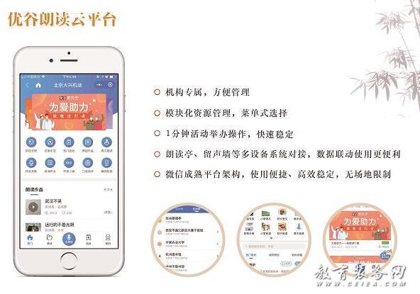 與此同時(shí),優(yōu)谷率先突破技術(shù),通過(guò)線(xiàn)上線(xiàn)下無(wú)縫聯(lián)通,至今已組織舉辦上千場(chǎng)朗讀活動(dòng),其中包括與中國(guó)環(huán)境部聯(lián)合舉辦的,以“揚(yáng)傳統(tǒng)文化、誦生態(tài)之美”為主題的“詩(shī)e中國(guó)行”生態(tài)文化公益活動(dòng);瀏覽總量突破480萬(wàn)關(guān)口的河南省紅色經(jīng)典誦讀·獻(xiàn)禮祖國(guó)70華誕朗讀活動(dòng),也是2019年最受讀者喜愛(ài)的朗讀活動(dòng);還有今年舉辦的備受學(xué)校歡迎的停課不停學(xué) 領(lǐng)跑新學(xué)期——語(yǔ)文課文預(yù)習(xí)打卡活動(dòng),以及330家機(jī)構(gòu)參與的為愛(ài)助力——致敬逆行者活動(dòng)等。