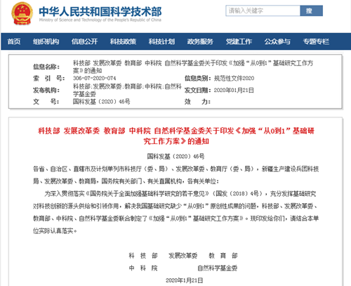 當(dāng)前,新一輪科技革命和產(chǎn)業(yè)變革蓬勃興起,國際競爭向基礎(chǔ)研究競爭前移,科學(xué)探索不斷向宏觀拓展、向微觀深入,交叉融合匯聚不斷加速,一些基本科學(xué)問題孕育重大突破,可望催生新的重大科學(xué)思想和科學(xué)理論,產(chǎn)生顛覆性技術(shù)。為解決我國基礎(chǔ)研究缺少“從0到1”原創(chuàng)性成果的問題,科技部、發(fā)展改革委、教育部、中科院、自然科學(xué)基金委近日印發(fā)《加強(qiáng)“從0到1”基礎(chǔ)研究工作方案》(以下簡稱《方案》)。