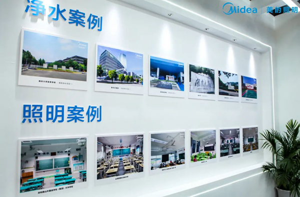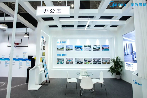 展示會(huì)上,美的照明通過(guò)模擬“教室區(qū)、辦公區(qū)、展示區(qū)、籃球區(qū)”,將微型校園搬到了現(xiàn)場(chǎng)。