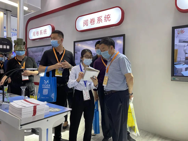 23日展會現(xiàn)場,吉星“理化生實(shí)驗(yàn)考試系統(tǒng)”展區(qū)引起參會者的廣泛關(guān)注。