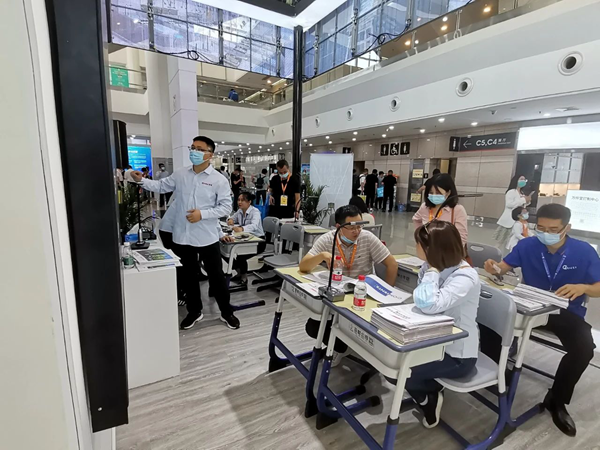 此外還設(shè)置人臉識別簽到功能,幫助監(jiān)考人員高效驗(yàn)證考生身份,維護(hù)考場公平公正,許多參會者主動咨詢探討實(shí)驗(yàn)室系統(tǒng)的功能與操作細(xì)節(jié)。