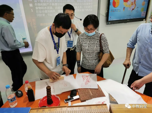當(dāng)然,明星產(chǎn)品數(shù)字星球系統(tǒng)、地理AR沙盤、VR教學(xué)系統(tǒng)還是參展觀眾的“心頭愛”。傳統(tǒng)文化體驗(yàn)套裝更吸引了不少老師的目光,一張張地拓印著我們的雕版印刷體驗(yàn)套裝,樂此不疲。