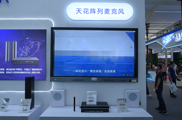 艾力特在本屆展會(huì)展示的新產(chǎn)品是教室音頻硬件終端和音頻軟件平臺(tái),硬件終端應(yīng)用在兩類教學(xué)場(chǎng)景:一類是專遞課堂場(chǎng)景使用的天花麥克風(fēng)陣列,這是一款集多路麥克風(fēng)陣列和3A音頻算法于一體的音頻終端,采用先進(jìn)的降噪、回聲消除和波束形成算法,具有聲源追蹤、教室聲場(chǎng)自適應(yīng)、設(shè)備集中管控的特點(diǎn),用戶只需在教室安裝一臺(tái)麥克風(fēng)陣列即可實(shí)現(xiàn)整個(gè)教室的清晰拾音和遠(yuǎn)程互動(dòng);另一類是教室擴(kuò)聲場(chǎng)景使用的廣播和擴(kuò)聲一體化解決方案,這個(gè)方案最大的價(jià)值是一套音頻系統(tǒng)解決了傳統(tǒng)教室擴(kuò)聲和廣播多系統(tǒng)、多設(shè)備部署且不兼容的痛點(diǎn)。