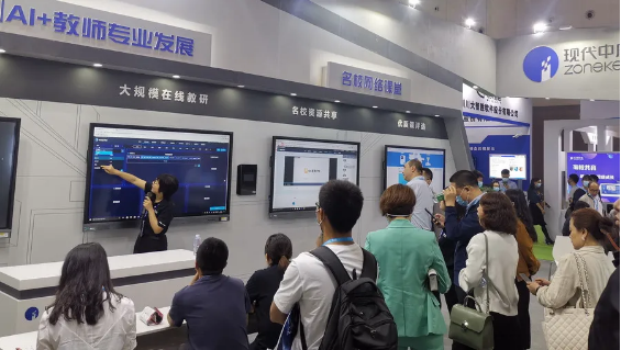 在現(xiàn)代中慶的展位里,AI教師專(zhuān)業(yè)發(fā)展展區(qū)一直人流不斷,觀展嘉賓們普遍被人工智能對(duì)課堂的數(shù)據(jù)化解析應(yīng)用所吸引,F(xiàn)代中慶人工智能自動(dòng)生成課堂數(shù)據(jù)分析報(bào)告,數(shù)據(jù)報(bào)告與課堂視頻相結(jié)合可以開(kāi)展精準(zhǔn)的課堂診斷與評(píng)價(jià);教師也可以基于數(shù)據(jù)進(jìn)行有針對(duì)性的自我反思。基于云平臺(tái)還可以開(kāi)展大規(guī)模的網(wǎng)絡(luò)數(shù)據(jù)化教研活動(dòng)。AI+互聯(lián)網(wǎng)極大拓展了名師課堂的研修模式創(chuàng)新。這一AI亮色成為展會(huì)中矚目的吸睛點(diǎn)。