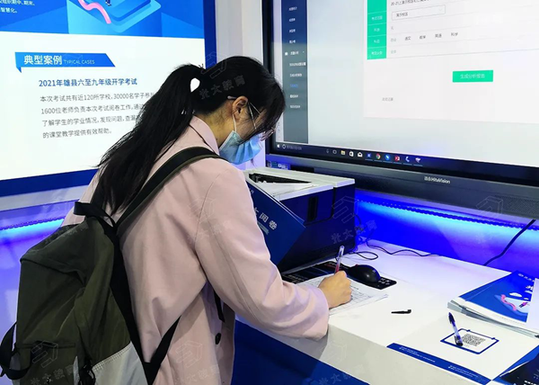 光大教育在教博會上展示了“光大閱卷”、“在線考試”與“紙筆互動課堂”等產品!肮獯箝喚怼、“在線考試”已上架釘釘平臺,系統(tǒng)與釘釘組織架構完全打通,管理員、老師、學生、家長通過釘釘平臺直接進入系統(tǒng),考試、閱卷、查成績、查看分析報告一站式完成。
