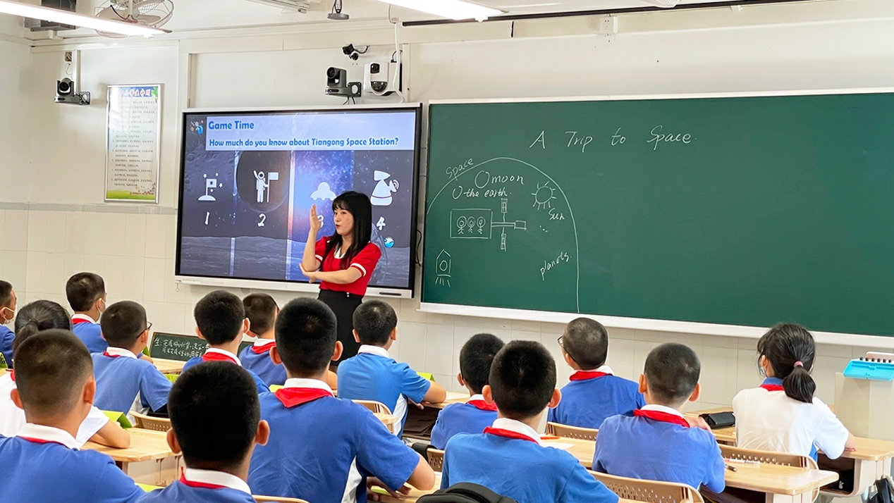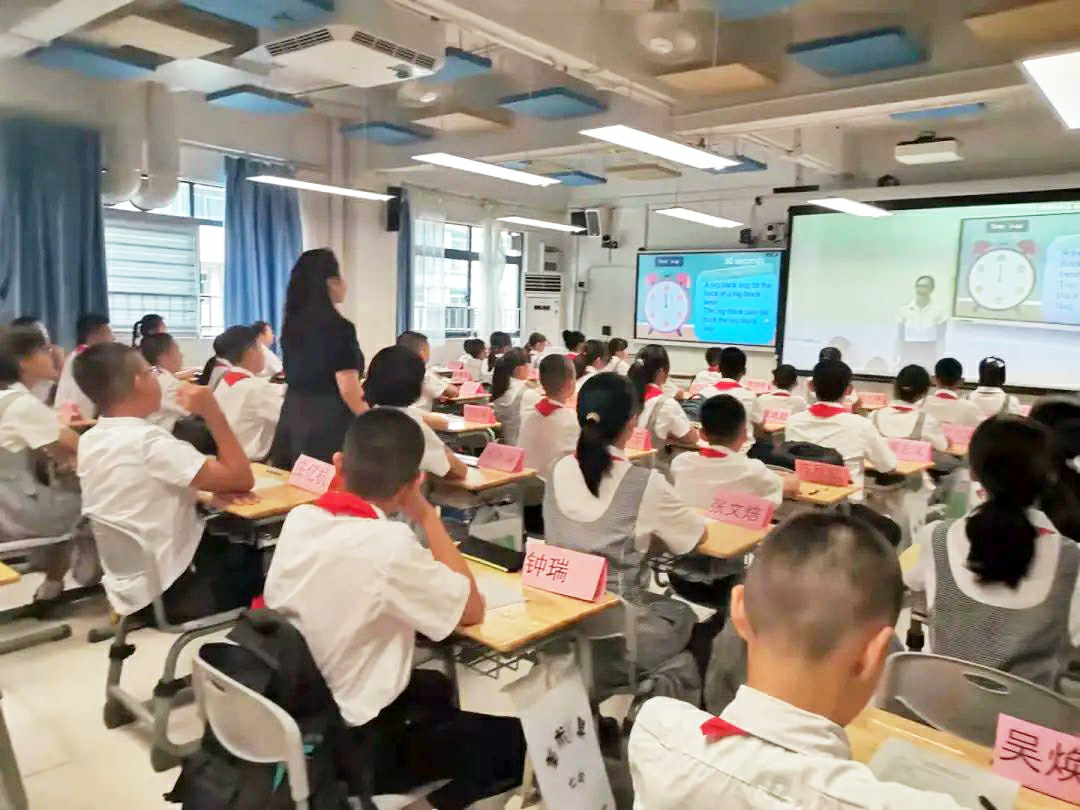 技術(shù)賦能,牽手云端。來(lái)自全市各個(gè)區(qū)10余所學(xué)校約20個(gè)班的師生同時(shí)連線(xiàn)到深圳高級(jí)中學(xué)南校區(qū)云端班的教室,和這里的學(xué)生一起上了一節(jié)精彩的云端英語(yǔ)課。來(lái)自深圳外國(guó)語(yǔ)學(xué)校初中部的王霈老師作為主講教師,在主場(chǎng)學(xué)校的云端教室里以趣味生動(dòng)的英文繞口令,給學(xué)生們帶來(lái)一場(chǎng)充滿(mǎn)創(chuàng)意的互動(dòng)課堂新體驗(yàn)。