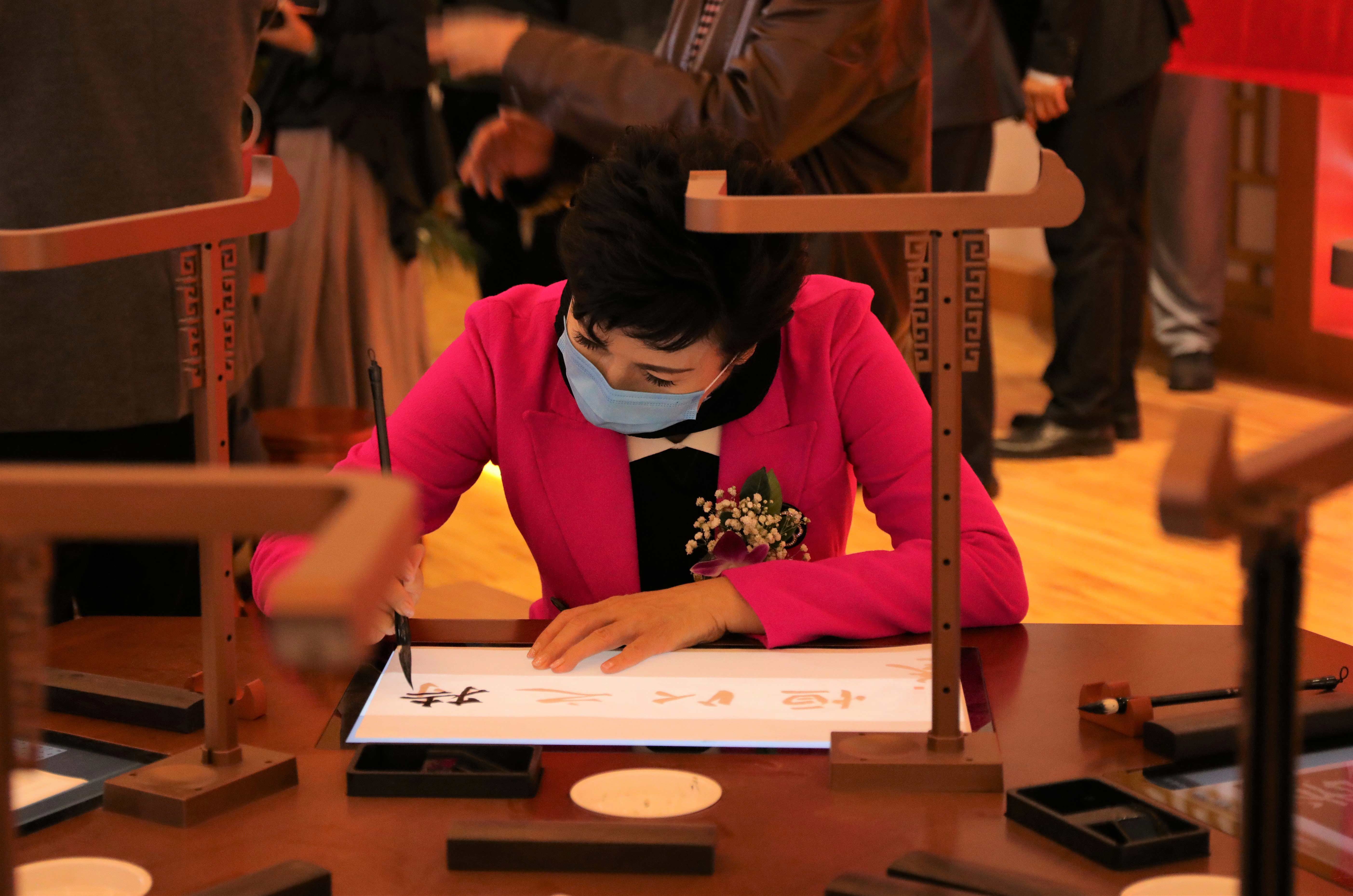 中國(guó)少年兒童文化藝術(shù)基金會(huì)會(huì)長(zhǎng)、民進(jìn)中央委員闞麗君體驗(yàn)智慧書(shū)法教室