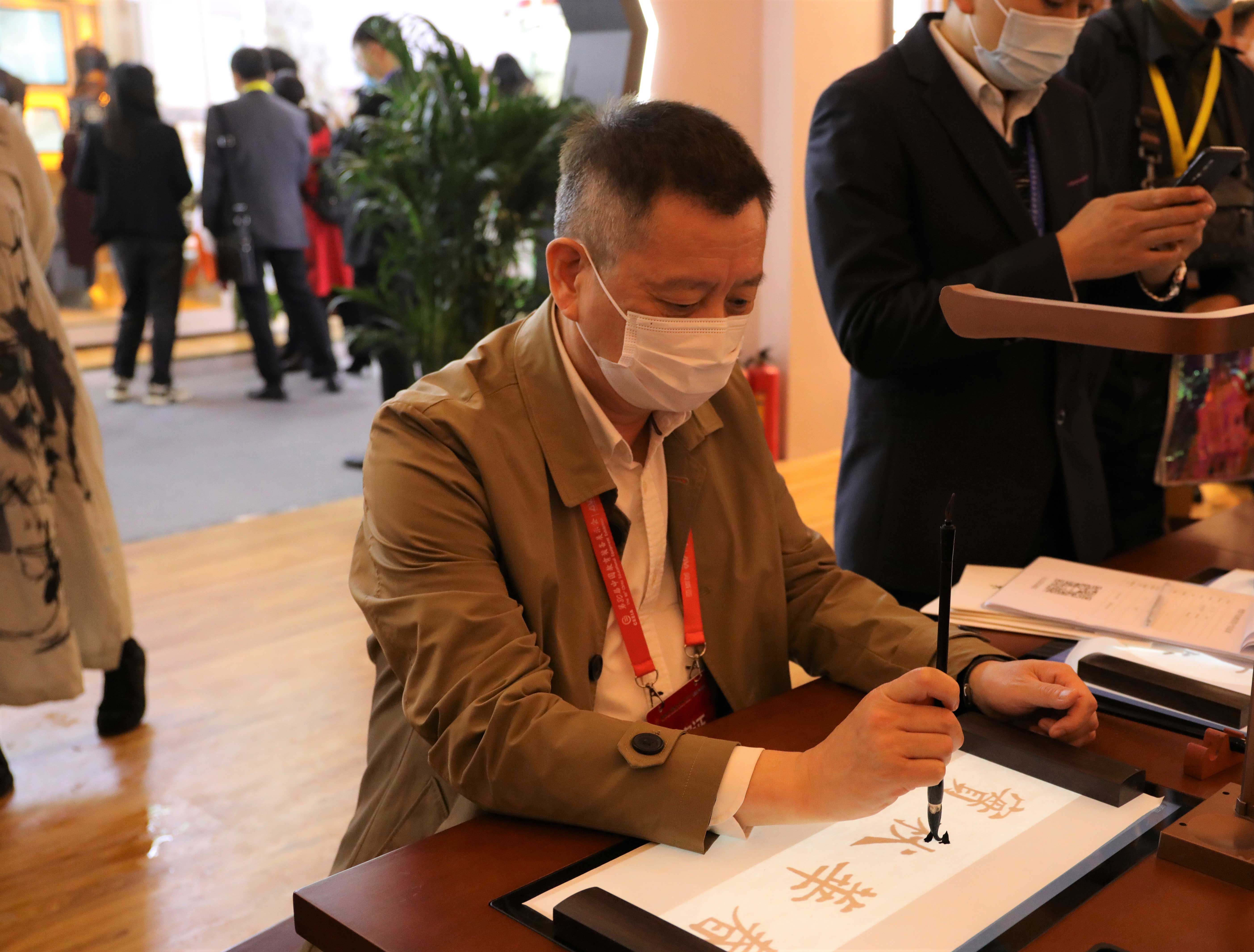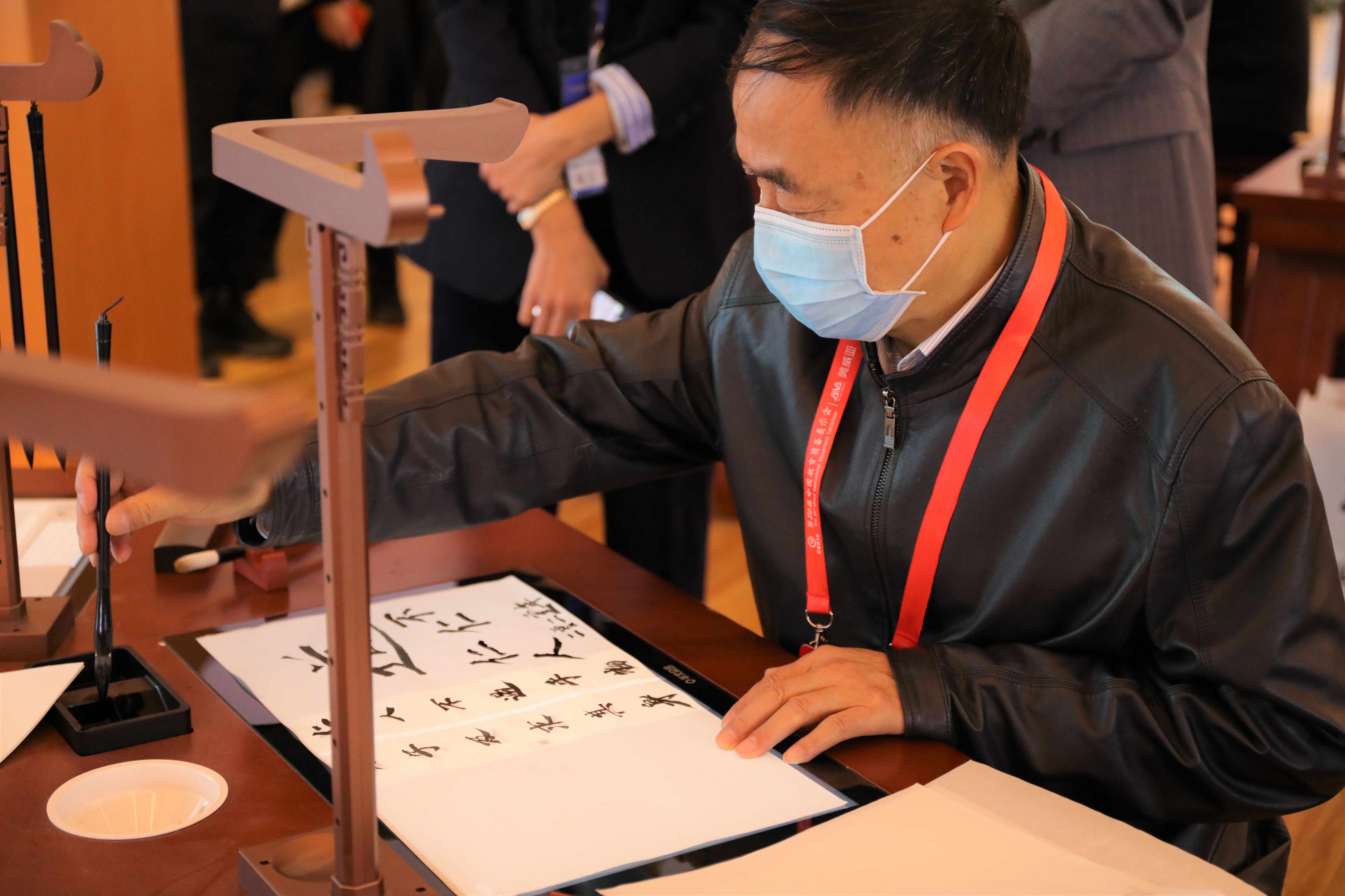 中國(guó)教育裝備行業(yè)協(xié)會(huì)未來(lái)教育裝備分會(huì)理事長(zhǎng)葉寶凌體驗(yàn)智慧書(shū)法教室