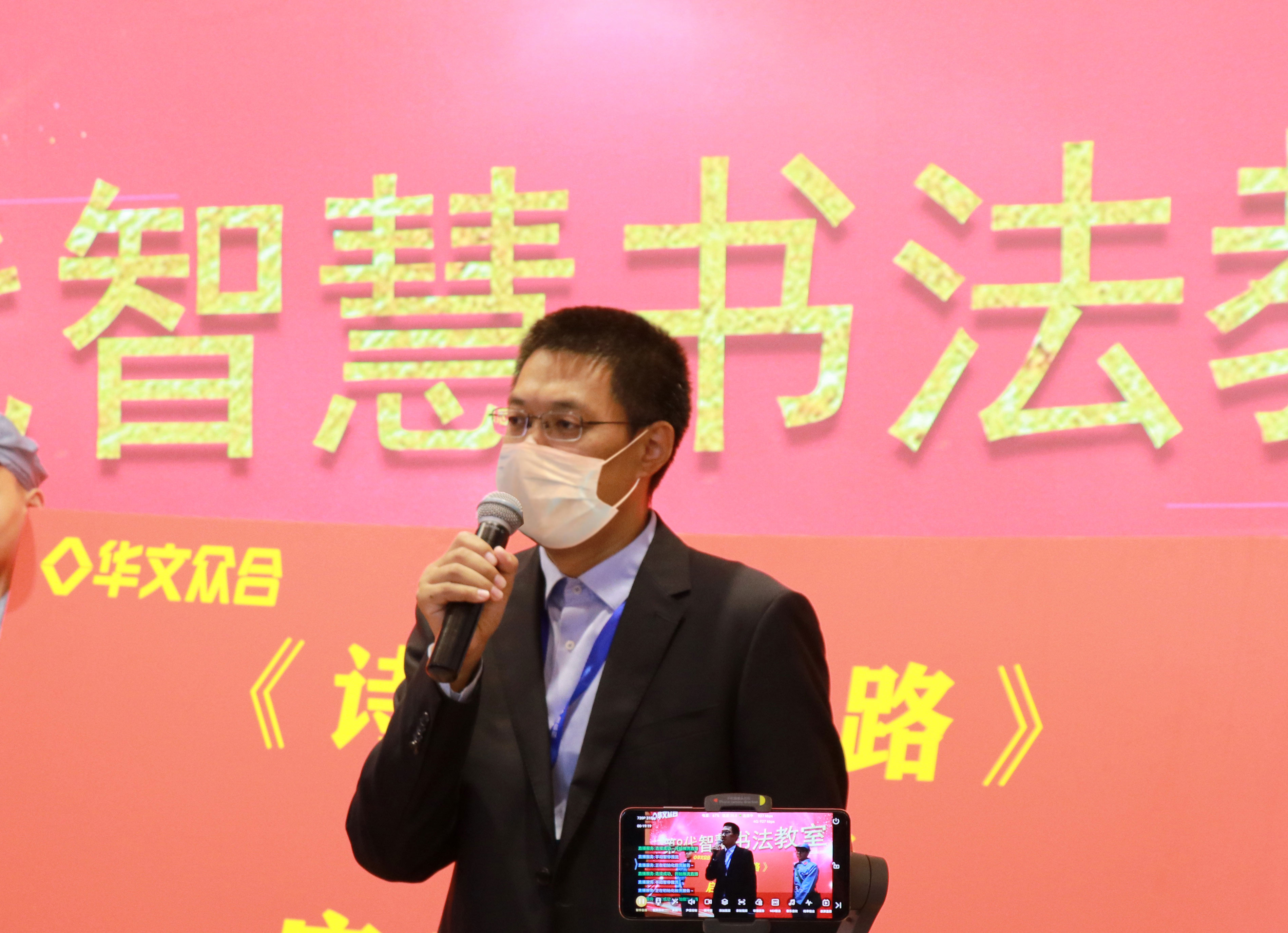 中國(guó)教育裝備行業(yè)協(xié)會(huì)副會(huì)長(zhǎng)李興植,中國(guó)少年兒童文化藝術(shù)基金會(huì)會(huì)長(zhǎng)、民進(jìn)中央委員闞麗君,中國(guó)教育裝備行業(yè)協(xié)會(huì)未來(lái)教育裝備分會(huì)理事長(zhǎng)葉寶凌,北京市數(shù)字教育中心主任武裝與華文眾合董事長(zhǎng)向大鳳共同為新產(chǎn)品揭開(kāi)面紗,宣布“華文眾合第8代智慧書(shū)法教室”正式發(fā)布。隨后李興植副會(huì)長(zhǎng)發(fā)表講話,對(duì)華文眾合智慧書(shū)法教育發(fā)展的實(shí)踐成果表示肯定,同時(shí),認(rèn)為書(shū)法既是我們中華民族的傳統(tǒng)文化,肯定了智慧書(shū)法的理念、模式和實(shí)施方案,希望廣大教師能夠充分利用信息化的手段,加強(qiáng)學(xué)校的現(xiàn)代化教育裝備,全面貫徹新時(shí)期黨的教育方針,讓育人責(zé)任共同擔(dān)當(dāng)起來(lái)。中國(guó)少年兒童文化藝術(shù)基金會(huì)會(huì)長(zhǎng)、民進(jìn)中央委員闞麗君發(fā)表致辭,書(shū)法教育是美育的重要組成部分,作為藝教工程智慧書(shū)法指定合作單位,華文眾合以嚴(yán)謹(jǐn)?shù)膽B(tài)度和精湛的技術(shù)真正實(shí)現(xiàn)“以師生為本”的教育,助力實(shí)現(xiàn)藝教工程智慧書(shū)法的全面化、個(gè)性化和智慧化。