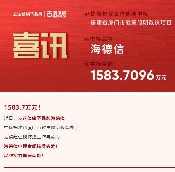 立達(dá)信旗下品牌海德信中標(biāo)廈門市教室照明改造項(xiàng)目