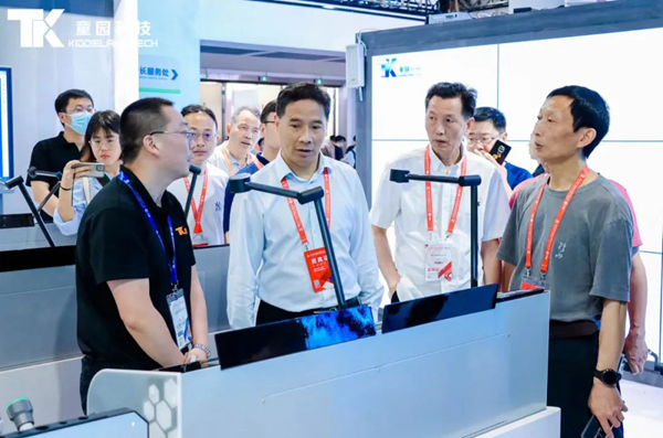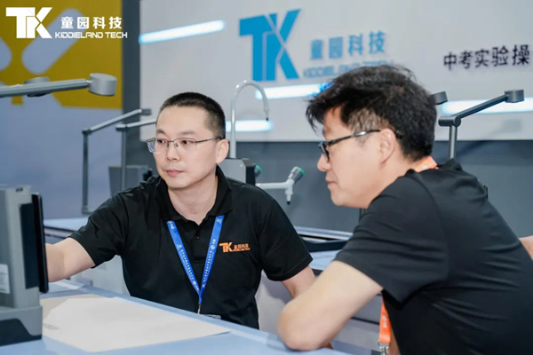教育部關(guān)心下一代工作委員會(huì)常務(wù)副主任、中國教育裝備行業(yè)協(xié)會(huì)專家委員會(huì)主任王富等參加開幕式的領(lǐng)導(dǎo)、嘉賓蒞臨童園科技展位參觀指導(dǎo),廣東童園科技有限公司CEO胡朝輝向各位領(lǐng)導(dǎo)嘉賓介紹了童園科技新產(chǎn)品和全新的戰(zhàn)略目標(biāo)。各位領(lǐng)導(dǎo)們對(duì)童園科技數(shù)字化智能實(shí)驗(yàn)室、中考實(shí)驗(yàn)操作考評(píng)系統(tǒng)等教育信息化系列產(chǎn)品給予了高度評(píng)價(jià);并充分肯定了童園科技以科技驅(qū)動(dòng)、科技創(chuàng)新與教育改革深度融合的戰(zhàn)略發(fā)展方向。