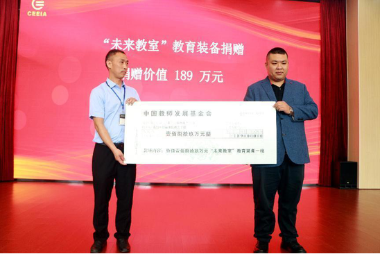 活動上,中國教育裝備行業(yè)協(xié)會未來教育裝備向中國發(fā)展基金會捐贈總價值189萬元“未來教室”教育裝備,中國發(fā)展基金會將捐贈裝備轉贈紅谷灘區(qū)騰龍學校。隨后,騰龍學校為鼎力支持此項目的各協(xié)辦企業(yè)頒發(fā)“未來教育”優(yōu)秀貢獻獎證書。