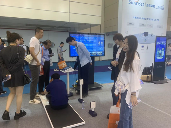 展會現場,有大批來賓參觀我們的展位,在工作人員的講解下體驗智慧體育產品,感受著AI賦能體育的全新模式。