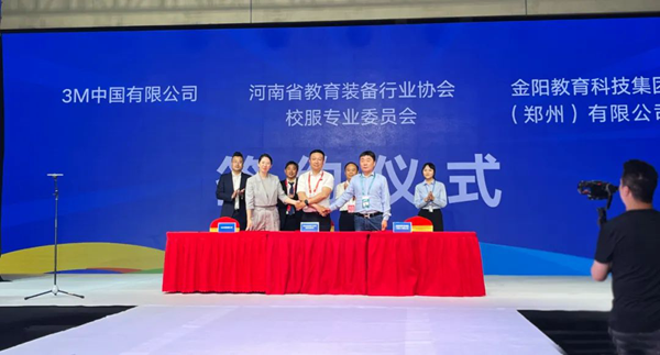 5月12日,在鄭州國際會展中心舉辦的2023河南省教育裝備博覽會上,金陽教育科技集團(tuán)、河南省教育裝備協(xié)會校服專委會分別與3M中國、YKK拉鏈順利進(jìn)行“豫傳承 育未來-全天候三方合作協(xié)議”簽約儀式。河南省教育資源保障中心主任王德如、黨委書記王磊、副主任孫艷紅、河南省教育裝備協(xié)會會長林忠培、秘書長武強(qiáng)、3M消費(fèi)品事業(yè)部服飾及紡織材料部亞太區(qū)總經(jīng)理劉麗娜、上海吉田拉鏈有限公司中西部負(fù)責(zé)人徐皓、金陽教育科技有限公司董事長陳濤,以及來自各地市裝備中心的領(lǐng)導(dǎo)及專家們出席了此次簽約儀式。