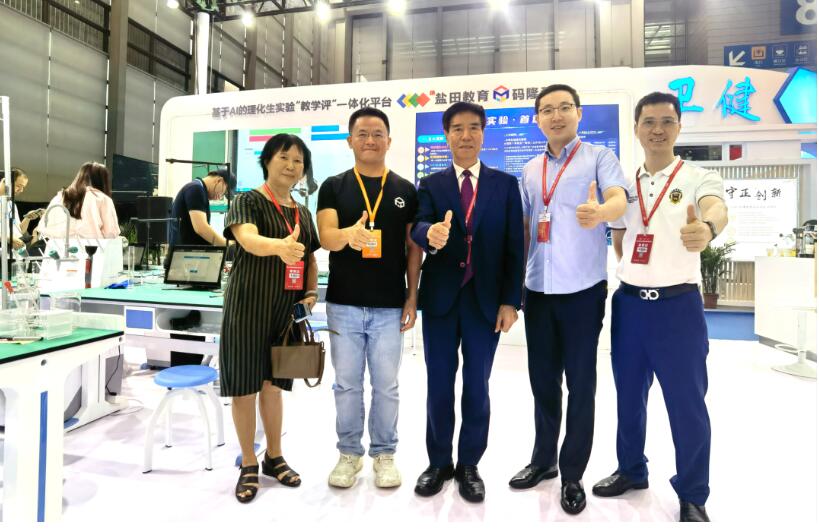 【教育部關(guān)心下一代工作委員會常務(wù)副主任、中國教育裝備行業(yè)協(xié)會專家委員會主任王富(右三)蒞臨碼隆展位參觀指導(dǎo)】