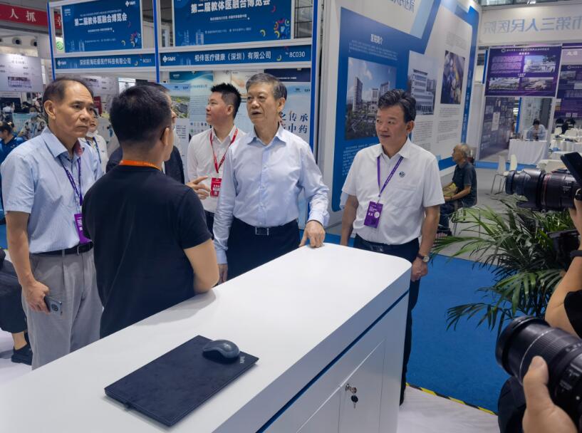 【深圳市福田區(qū)委常委、統(tǒng)戰(zhàn)部部長吳歡(右二),蒞臨碼隆展位參觀指導(dǎo)】