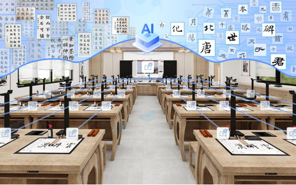 漢丹云智慧書法教室實(shí)現(xiàn)了書法教學(xué)場(chǎng)景的全過程數(shù)字化,借助自主研發(fā)的各類軟硬件系統(tǒng),從例字教學(xué)到作業(yè)電子化一鍵歸檔,實(shí)現(xiàn)書法課堂教學(xué)評(píng)練測(cè)五大環(huán)節(jié)的數(shù)字化場(chǎng)景支撐,解決學(xué)校書法教師師資不足問題。