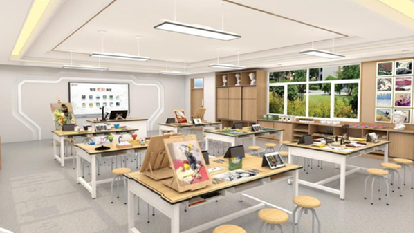 漢丹云智慧美術(shù)教室基于智慧課堂模型研發(fā),通過美術(shù)教學(xué)軟硬件設(shè)備和繪畫工具材料的結(jié)合使用,覆蓋多種美術(shù)教學(xué)場(chǎng)景的專用功能教室。通過人工智能、大數(shù)據(jù)和云平臺(tái)等技術(shù)應(yīng)用,為美術(shù)學(xué)科打造數(shù)字化、智能化和網(wǎng)絡(luò)化的專用功能教室,解決傳統(tǒng)美術(shù)課堂教學(xué)結(jié)構(gòu)單一、師生互動(dòng)困難、教學(xué)目標(biāo)難以實(shí)現(xiàn)等缺陷,實(shí)現(xiàn)美術(shù)教育信息化,推動(dòng)美術(shù)教育高質(zhì)量的發(fā)展。智慧美術(shù)教室可用于美術(shù)課程授課、數(shù)字寫生、作品臨摹、名畫賞析、探究式項(xiàng)目學(xué)習(xí)、網(wǎng)絡(luò)化美術(shù)資源檢索共享和電腦數(shù)字繪畫等課程。