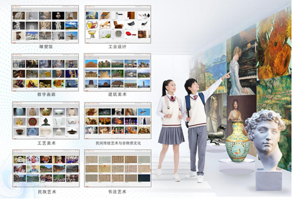 提供優(yōu)質(zhì)高精度的美術(shù)教學(xué)素材資源,包括書法藝術(shù)、民族藝術(shù)、數(shù)字畫廊、民間傳統(tǒng)藝術(shù)與非物質(zhì)文化、工藝美術(shù)、工業(yè)設(shè)計(jì)、雕塑館和建筑藝術(shù)八個(gè)板塊。通過先進(jìn)的采樣、制作和展示技術(shù),將不同門類的藝術(shù)作品高度還原在教學(xué)場(chǎng)景中,實(shí)現(xiàn)藝術(shù)作品沉浸式鑒賞。達(dá)到作品細(xì)節(jié)高精度展示的同時(shí)滿足普適教育與專業(yè)教育的不同需求。