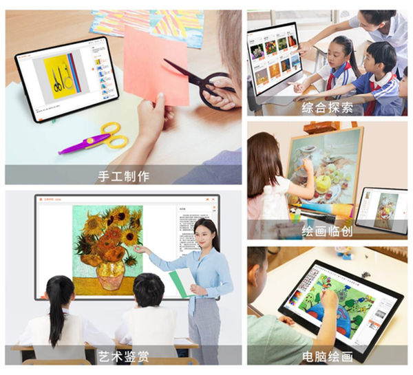 產(chǎn)品借助豐富的軟件功能、課程資源和智能設(shè)備幫助老師更好開展四大類藝術(shù)實(shí)踐課程,方便學(xué)生進(jìn)行繪畫臨創(chuàng)、手工制作、藝術(shù)設(shè)計(jì)、欣賞鑒賞以及項(xiàng)目實(shí)踐等活動(dòng)。產(chǎn)品在服務(wù)于美術(shù)課堂教學(xué)的同時(shí),同時(shí)提供豐富的內(nèi)容和功能用于支持課后延時(shí)服務(wù)、書法美術(shù)社團(tuán)活動(dòng)、特色課程開展和藝術(shù)創(chuàng)新實(shí)踐等學(xué)校美育活動(dòng)。