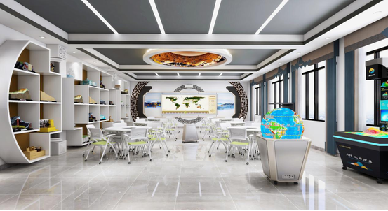 合理利用空間,為日常教學(xué)、公開課、評(píng)課、集體備課提供必要條件。營(yíng)造整體地理學(xué)科環(huán)境氛圍,整體設(shè)計(jì)以教學(xué)為本,配合空間設(shè)計(jì)手法,實(shí)現(xiàn)數(shù)字地理專用教室學(xué)科特色,藝術(shù)特色!