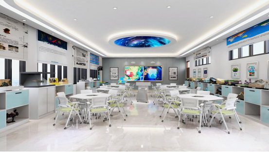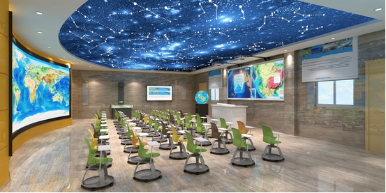 教室通過多媒體球幕投影演示儀系統(tǒng)、數(shù)字立體地形,為地理教學(xué)、科普活動(dòng)、環(huán)境教育提供先進(jìn)的數(shù)字化教學(xué)環(huán)境。