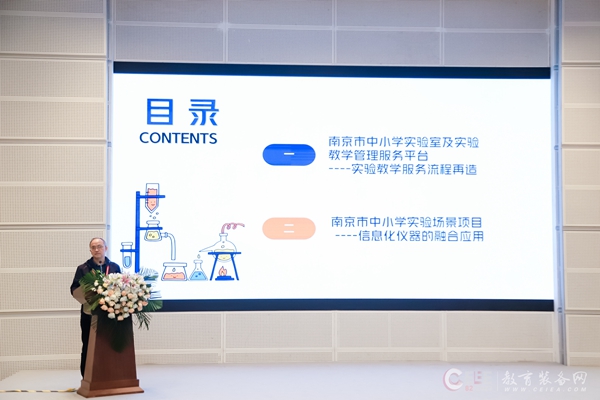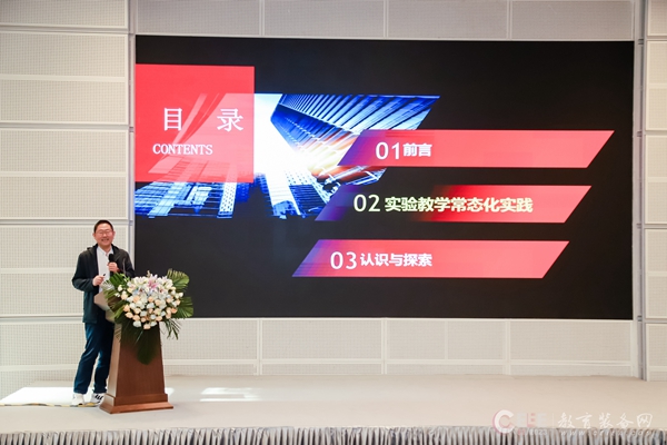 專家學(xué)術(shù)報(bào)告與經(jīng)驗(yàn)交流環(huán)節(jié),中國(guó)教育裝備行業(yè)協(xié)會(huì)教育裝備研究院副院長(zhǎng)施建國(guó)、湖州市教育技術(shù)學(xué)會(huì)會(huì)長(zhǎng)沈建康、湖南省教育生產(chǎn)裝備處主任張萬(wàn)敏、天津市第二南開(kāi)學(xué)校副校長(zhǎng)、高級(jí)教師尤瑞冬、南京教育技術(shù)裝備中心主任鄧中材分別作主題為“新課標(biāo)背景下的實(shí)驗(yàn)教學(xué)創(chuàng)新”、“常態(tài)化實(shí)驗(yàn)教學(xué)的實(shí)踐與認(rèn)識(shí)”、“聚焦’三不’問(wèn)題,促進(jìn)實(shí)驗(yàn)教學(xué)高質(zhì)量發(fā)展”、 “勤反思敬終如始 積踐步善作善成——天津市第二南開(kāi)學(xué)校實(shí)驗(yàn)室;饭芾硎褂们闆r報(bào)告”、“南京市中小學(xué)實(shí)驗(yàn)室數(shù)字化場(chǎng)景重構(gòu)及應(yīng)用”的報(bào)告。